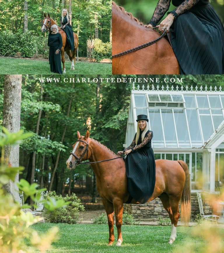 She giggled a little as Connor, fidgeting around on the the lawn and overpowered her tiny frame. Connor was big boy, powerful and muscular but with a sweet and slightly goofy ‘gelding’ attitude. At first glance you may have mistakenly believed that Megan, in a delicate lace sleeved dress, was not much of a horse girl but that could not be further from the truth!