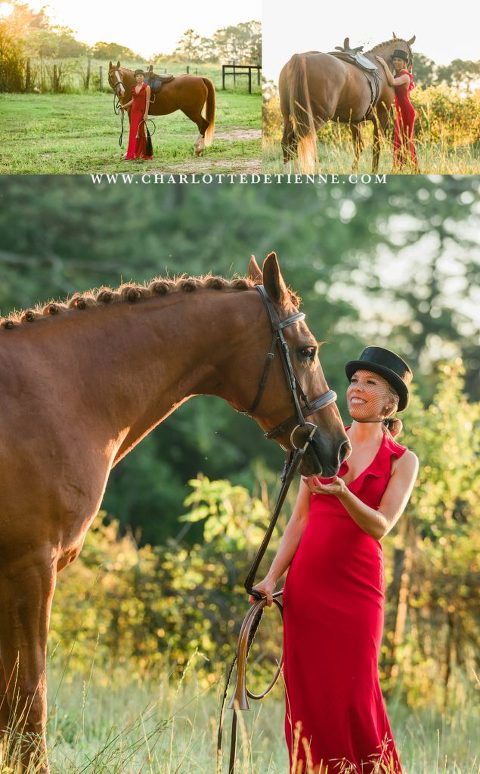 Despite having three National Titles in Dressage and multiple National Top Tens in Dressage, Hunters, Equitation, plus a USDF Bronze Medal; Megan is quick to credit her supportive family for her success in the showing world. “While a lot of people on the outside just see these pretty horse photos. They don’t realize the time it takes to be successful with horses – It takes time, energy, missing meals, late nights or early mornings, no social life, a supportive team/family, and a dash of good luck. At shows, the chores are all done by mom, Kathy, my sister and I – cleaning stalls, bathing, feeding, cleaning tack, hand walking, etc. People think I get to ride SO much but had a time in my life I didn’t ride for almost two years. Though during that time I was actually incredibly blessed and got to build a house AND get married to my incredible husband, Bradley, who is an absolute SAINT for putting up with my horse obsession. He is incredibly helpful, hands on, and supportive…the same goes for my mother, Kathy, and my sister, Jessica. I think many people would give up horses at this point, but the time with horses is MY therapy and MY sport…even if that means I’m just going to the barn to groom or feed or do basic ground work.”